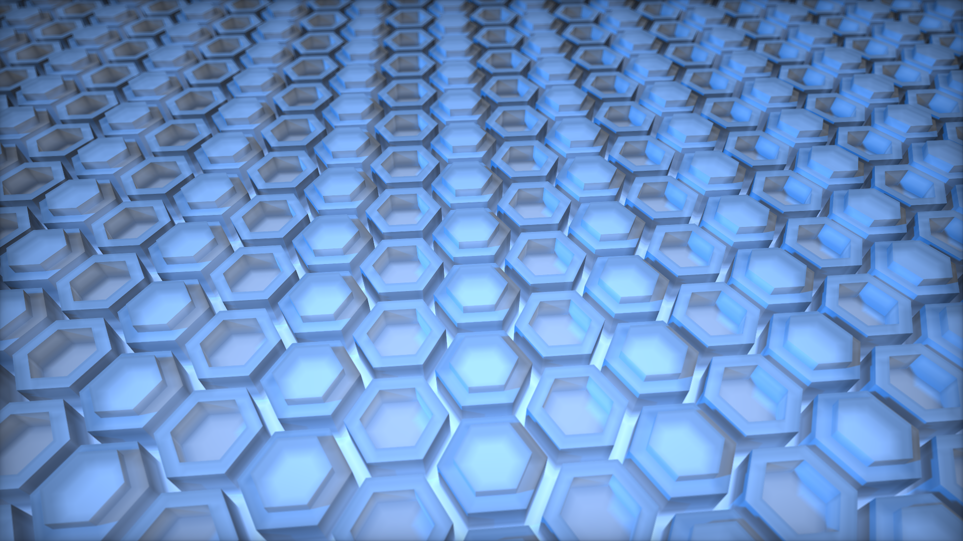 Subsurface Hexfield - trying out sub-surface scattering glow effects. High-resolution render with anti-aliasing and depth-of-field effect.