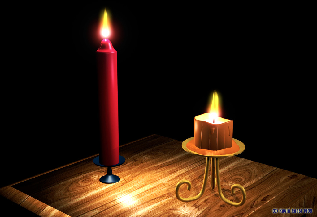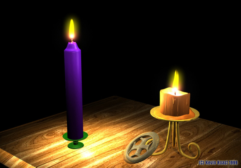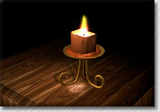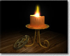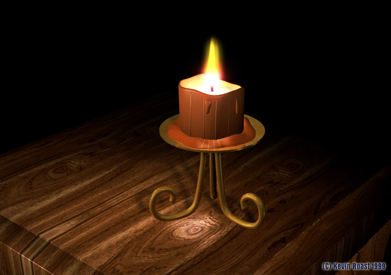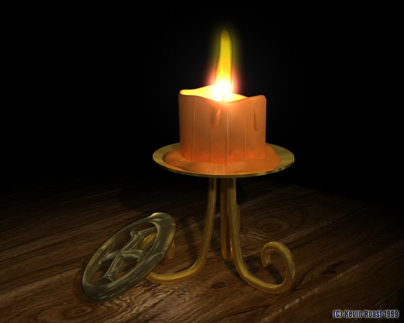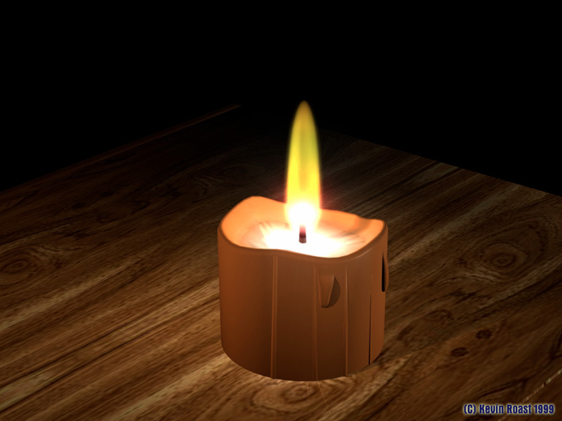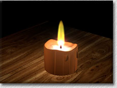 The running wax is modelled by hand and the glowing centre of the candle uses an image map to simulate the lighter colour at the centre.