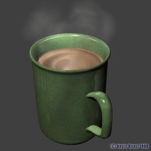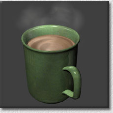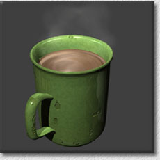 The steam rising from the coffee is created using Lightwave's built in smoke and steam plugins.