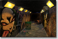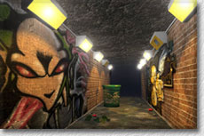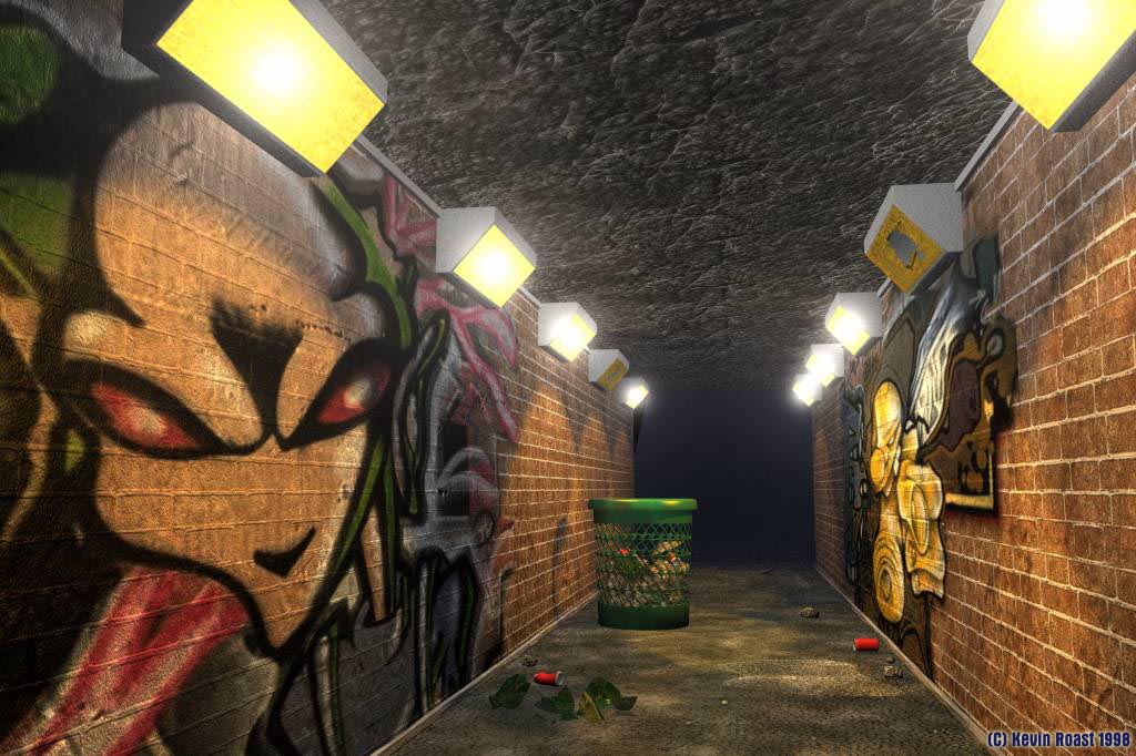 The interesting images on the walls of the subway are real graffiti photos from New York.