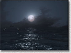 Playing around with a water effect surface for the ocean and various lighting setups to create a scene with a sunset and a scene with a nice moonlit look.