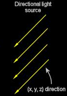 Diffuse Lighting - both the light direction and the object surface normal. Varies across surface of an object due to light direction and changing surface normal vector.