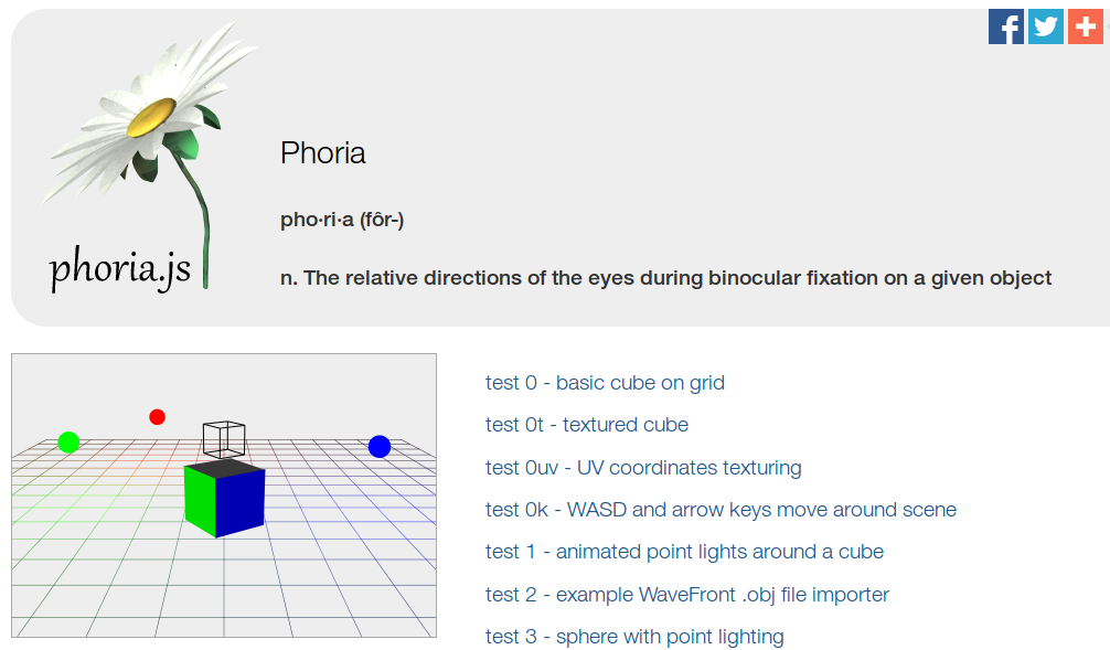 Object definition, 3D transformation pipeline, rendering to HTML5 canvas...